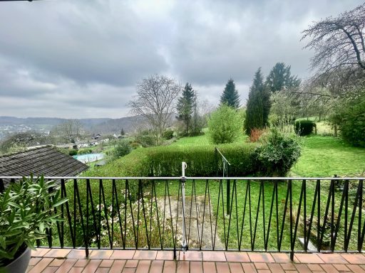 Das absolute Highlight: der wunderschöne Garten mit unverbautem Fernblick. Von den beiden großzügigen Balkonen schweift der Blick über das eigene weitläufige Grundstück weit in die hügelige Landschaft des Bergischen Landes. Ein Panorama, das zu jeder Jahreszeit begeistert und Lebensqualität pur garantiert. Eine Garage und ein Stellplatz runden dieses attraktive Angebot ab.