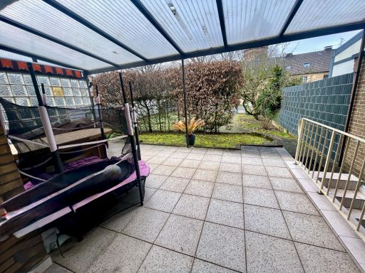 Das Highlight für Sommertage ist zweifellos das ca. 406 m2 große Grundstück. Durch die Endlage des Hauses und die bewachsene, überdachte Terrasse genießen Sie hier ein Plus an Privatsphäre. Genießen Sie Ihren Morgenkaffee oder Grillabende auch bei einem Sommerregen im Trockenen. Ein zusätzlicher Balkon im Obergeschoss lädt zum Durchatmen ein.